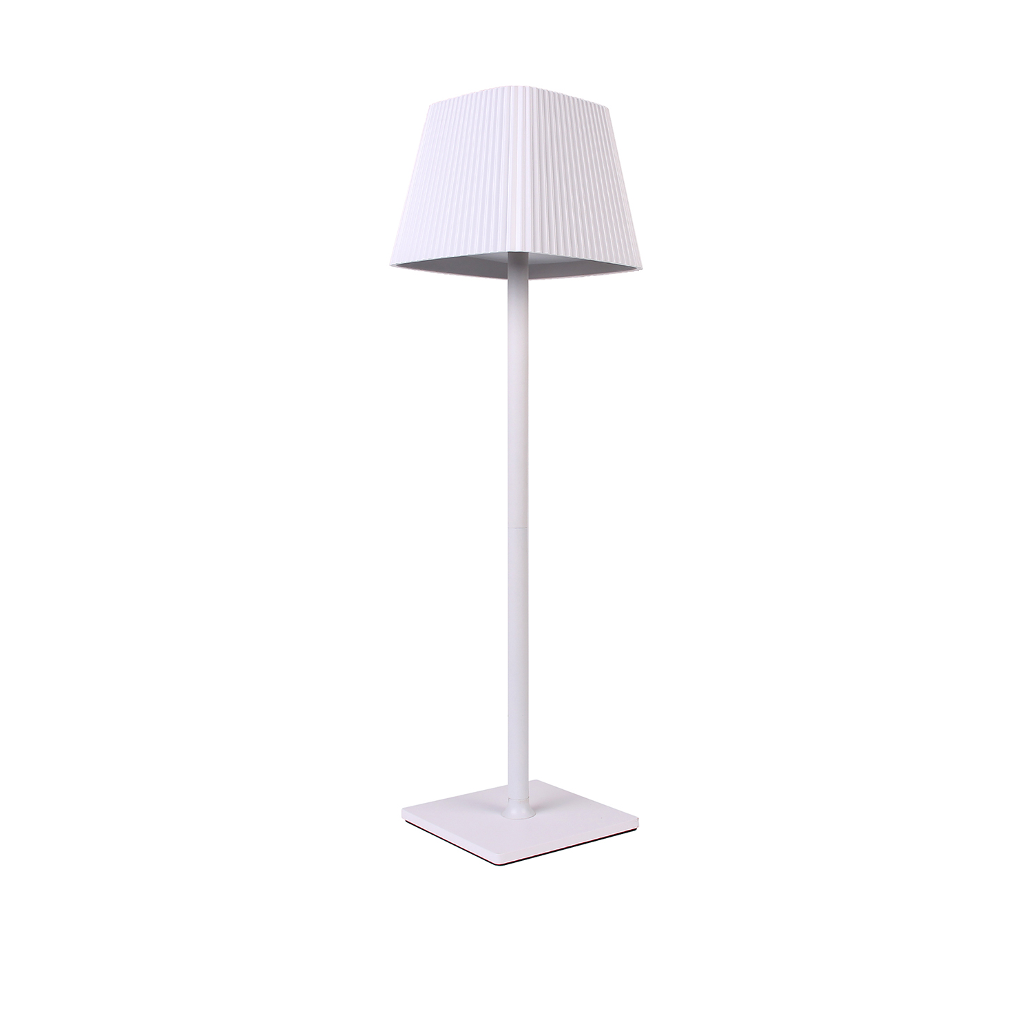La forma slanciata e il paralume plissettato donano alla lampada un aspetto minimalista ma sofisticato, che si abbina con facilità a qualsiasi tipo di arredamento, sia classico che contemporaneo. La colorazione bianca neutra la rende un complemento versatile per ogni ambiente, contribuendo a creare spazi ordinati e luminosi.