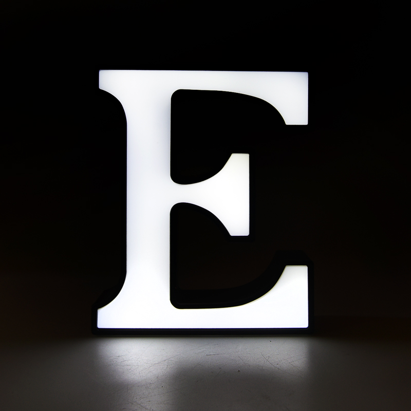 Infografica Decorazione Luminosa a Batteria Lettera E in Termoplastica Resistente Luce Bianca