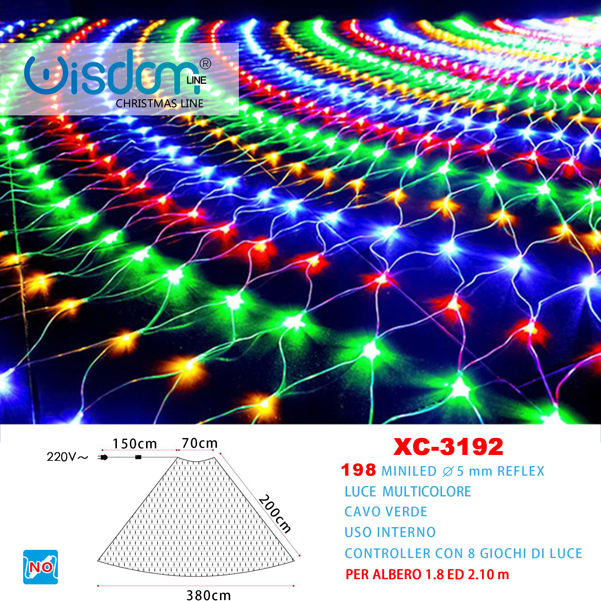 Mantello per albero di Natale con dimensioni 380 x 200 x 70 cm dotato di controller con 8 giochi di luce.
