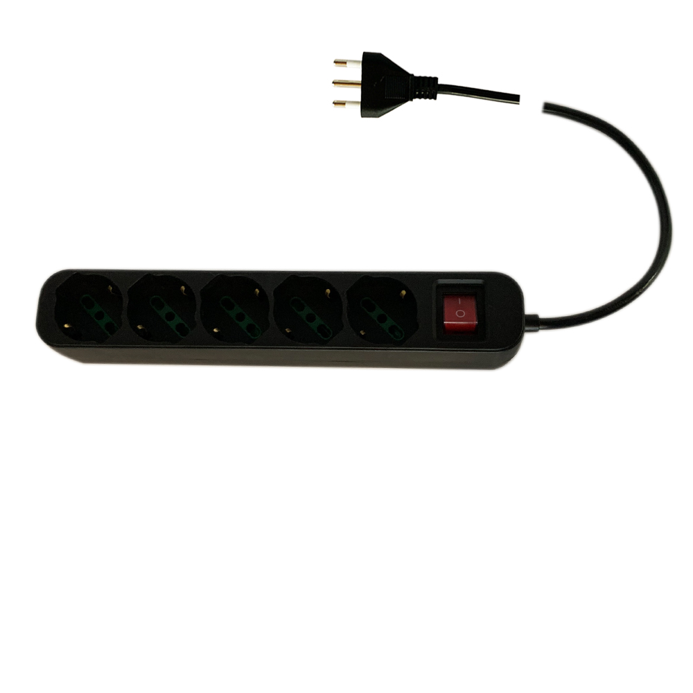 Presa bipasso Schuko a 5 uscite 2P/T 10/16A con 5 prese 10/16A e spina 16A 2P/T con cavo da 1,5 mt