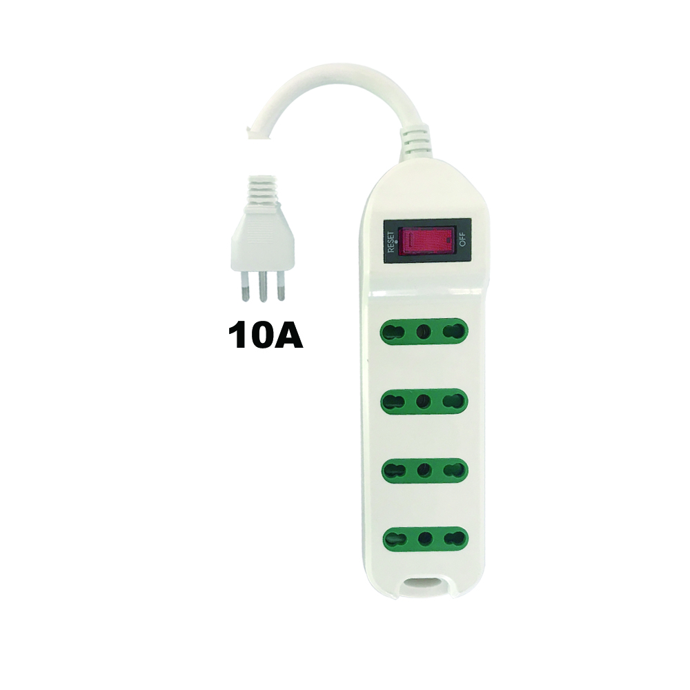 Presa multipla bipasso con 4 prese 2P+T 10/16 A , interruttore on/off e cavo da 1,5 metri con spina 10A 2P+T e protezione da sovraccarico