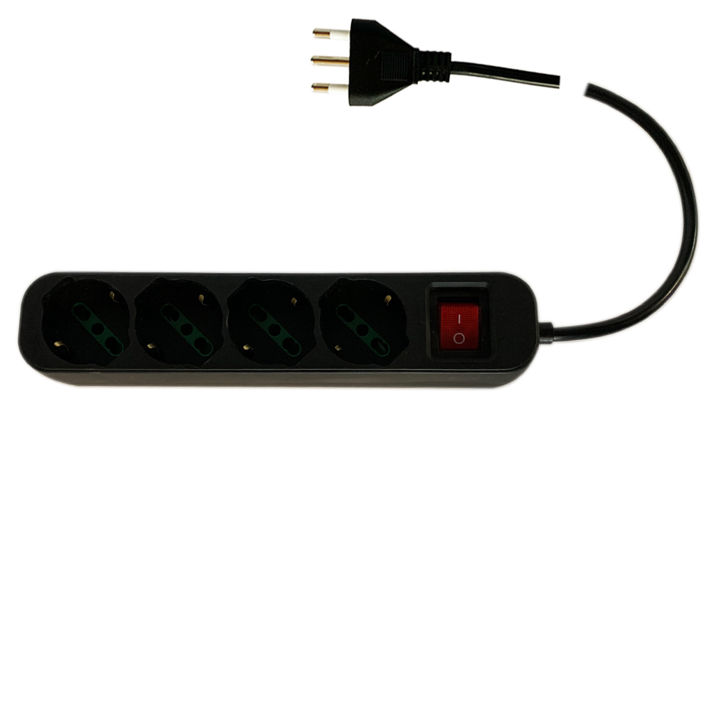 Presa quadrupla bipasso Schuko 2P/T 10/16A con 4 prese 10/16A e spina 16A 2P/T con cavo da 1,5 mt