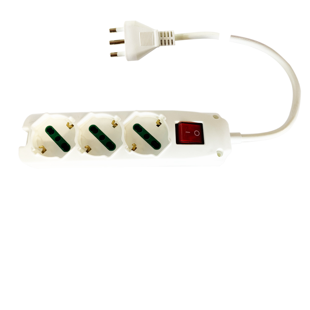 Presa tripla bipasso 2P/T 10/16A ed interrutore con spina 16A 2P/T con cavo da 1,5 metri