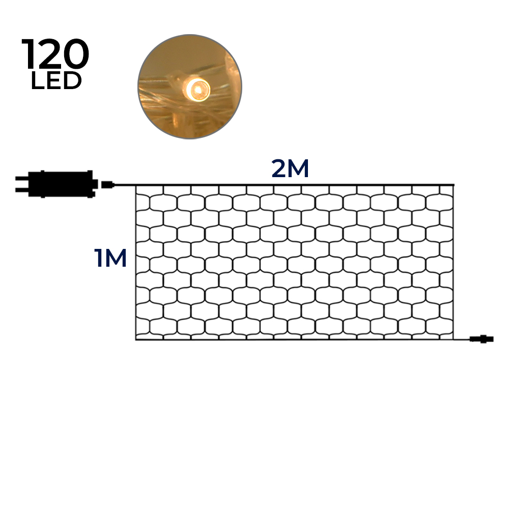 Immergiti in un'atmosfera calda e accogliente con la nostra rete luminosa LED di alta qualità, un accessorio decorativo che trasforma qualsiasi spazio esterno in un angolo di pura magia. Questa rete luminosa, estesa su una dimensione di 2 metri in lunghezza e 1 metro in altezza, è dotata di 120 LED a luce calda che emettono una luminosità soffusa e avvolgente, ideale per creare scenari fiabeschi in giardini, terrazzi, o per eventi speciali come matrimoni, feste natalizie, e molto altro. Il colore giallo delle luci, unito al cavo trasparente, conferisce un effetto quasi invisibile durante il giorno, mentre di notte, le luci si accendono illuminando lo spazio con una luce dorata che invita al relax e alla convivialità. Grazie al trasformatore a bassa tensione di 31V con presa Schuko, questa rete luminosa garantisce un utilizzo sicuro all'esterno, rispettando tutte le normative vigenti in termini di sicurezza e consumo energetico. Ogni LED della rete è posizionato a una distanza di 16,5 cm l'uno dall'altro, permettendo una distribuzione uniforme della luce che valorizza ogni angolo dello spazio circostante. La rete è alimentata a 220-240V AC e funziona a una frequenza di 50/60 Hz, con un cavo di alimentazione lungo 3 metri che offre grande flessibilità nella scelta della posizione. Inoltre, i materiali di costruzione, gomma e rame, sono selezionati per la loro durabilità e resistenza agli agenti atmosferici, garantendo un prodotto di lunga durata. Una delle caratteristiche più apprezzate di questa rete luminosa è la funzionalità che offre 8 giochi di luce preimpostati, permettendo di variare l'atmosfera in base all'occasione o al proprio umore. Che si tratti di una luce fissa, lampeggiante, o di un effetto cascata, avrai sempre l'opzione giusta per creare l'atmosfera desiderata. Con un grado di protezione IP44, questa rete è progettata per resistere a spruzzi d'acqua e infiltrazioni di polvere, rendendola perfetta per l'uso esterno in condizioni atmosferiche variabili. Che tu voglia adornare un balcone, creare un percorso luminoso nel tuo giardino, o semplicemente aggiungere un tocco di luce a una serata all'aperto, questa rete luminosa LED è la scelta ideale per chi cerca una soluzione d'illuminazione versatile, sicura e di grande impatto estetico