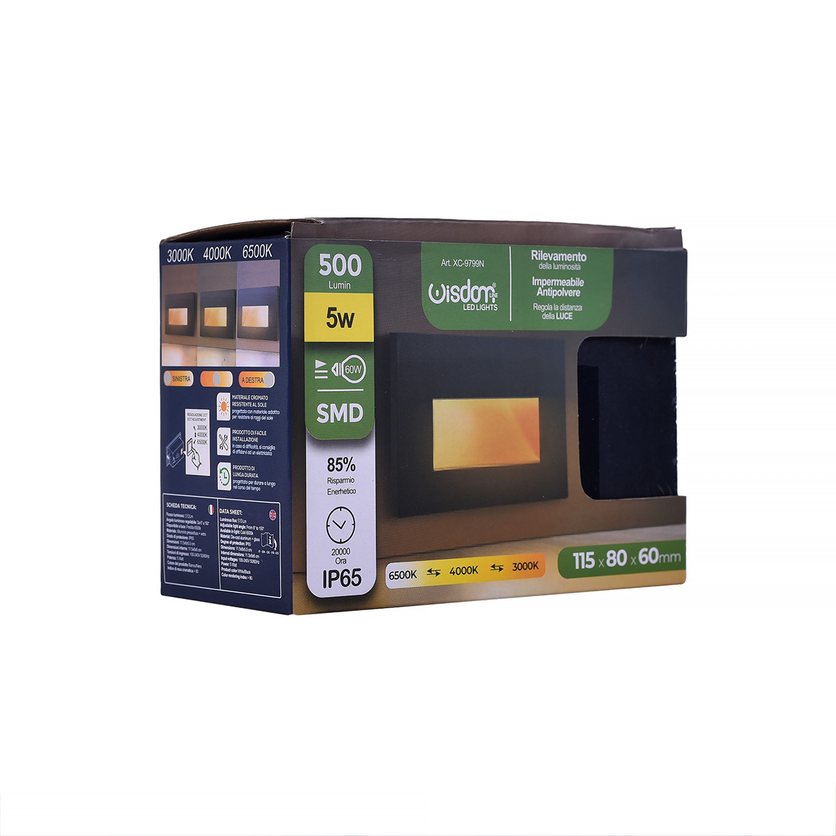 Il segnapasso LED 5W per scatola 503 con CCT Switch è un'ottima scelta per chi desidera un'illuminazione da incasso elegante, funzionale e resistente. Grazie alla tecnologia CCT Switch, offre la possibilità di scegliere tra tre diverse temperature di colore: 3000K (luce calda), 4000K (luce naturale) e 6500K (luce fredda), adattandosi a diverse esigenze di illuminazione sia per ambienti interni che esterni. Questo segnapasso è equipaggiato con LED SMD ad alta efficienza, garantendo risparmio energetico e lunga durata. Con una potenza di 5W e un’alimentazione di 220-240V AC a 50/60 Hz, assicura una luminosità ottimale con consumi ridotti. Il suo design rettangolare in alluminio nero conferisce uno stile moderno e minimalista, perfetto per ambienti eleganti e contemporanei. La protezione IP65 lo rende resistente a polvere e getti d’acqua, permettendo l'installazione anche in ambienti esterni esposti agli agenti atmosferici. Grazie alle dimensioni compatte di 115 x 80 x 60 mm, è compatibile con le scatole 503, facilitando un’installazione stabile e sicura