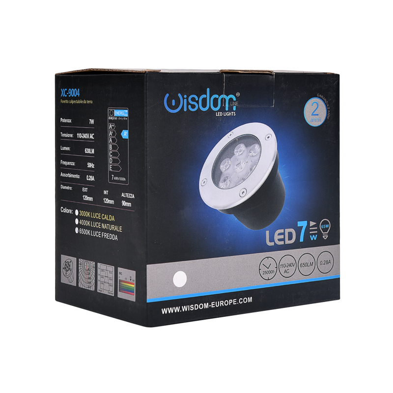 Infografica Caratteristiche Tecniche Faretto LED da 7w ad Incasso Calpestabile Luce Fredda
