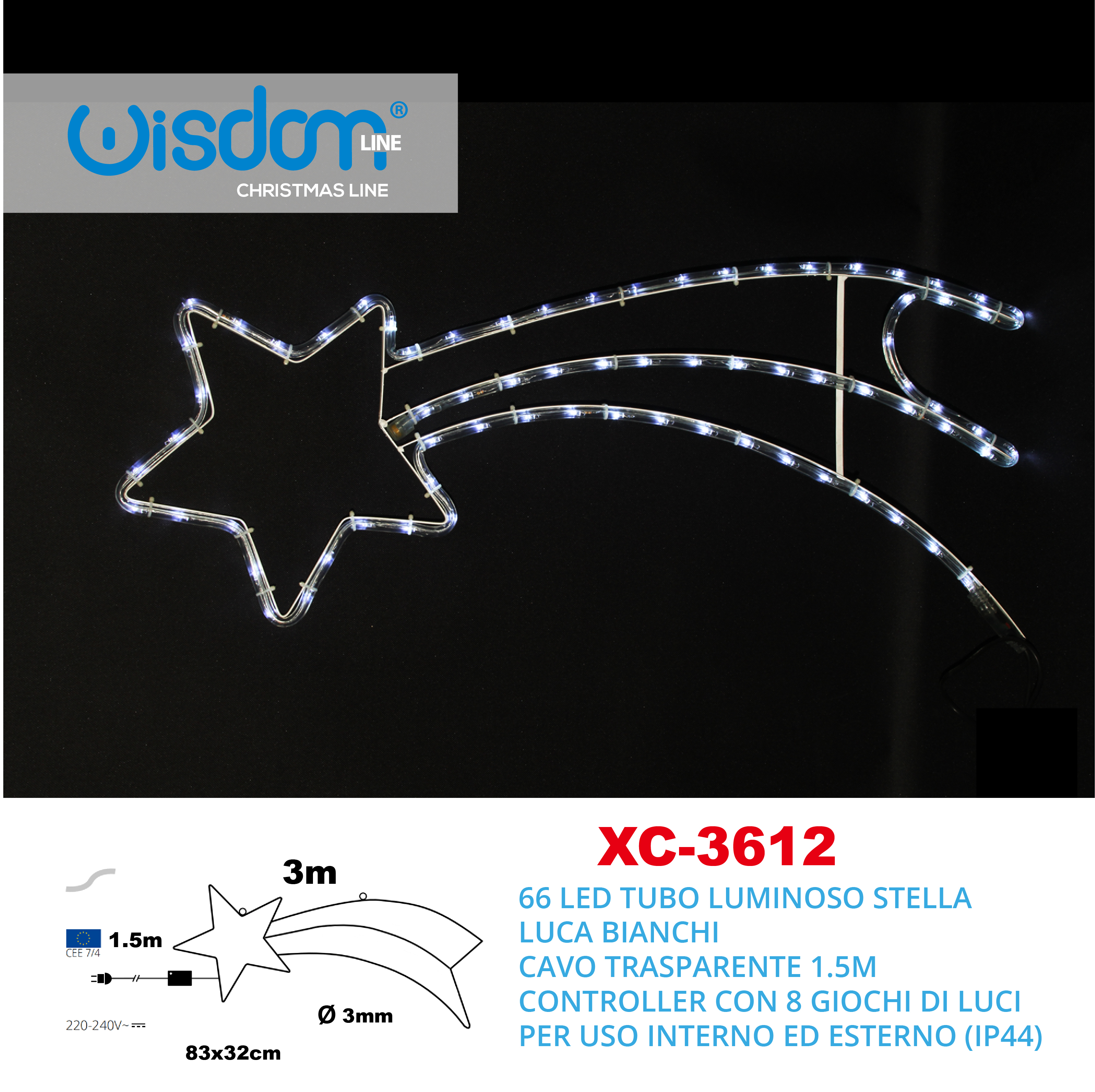 Stella cometa luminosa con 66 led decorativo per interni ed esterni con grado di protezione IP44