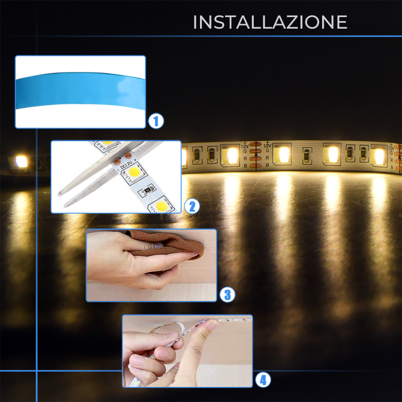 Scopri la rivoluzionaria Striscia LED 12V che offre un'illuminazione super luminosa e versatile per qualsiasi ambiente. Questa striscia LED avanzata è dotata di 120 LED per metro, garantendo una luce brillante e intensa, perfetta per creare ambienti luminosi e accoglienti. La nostra striscia LED presenta una temperatura del colore variabile tra 4000-6000K, che permette di scegliere tra luce naturale e bianco freddo. Questa caratteristica la rende ideale per diversi scenari, dal rilassante bagno serale alla lettura intensa nel tuo studio. La regolazione dell'intensità luminosa tramite un pratico telecomando aggiunge un ulteriore livello di comfort e personalizzazione. Con una lunghezza di 5 metri e una larghezza di soli 8 mm, la nostra striscia LED è incredibilmente versatile. Può essere facilmente tagliata e adattata a qualsiasi spazio, sia interno che semi-esterno, grazie al suo grado di protezione IP20. Il nastro biadesivo incluso assicura un'installazione semplice e veloce, senza la necessità di strumenti professionali. Operando a 12V AC, questa striscia LED è sicura al tocco, riducendo notevolmente i rischi di incidenti elettrici. Inoltre, l'assenza di radiazioni UV e infrarossi la rende sicura per la vista e l'ambiente. Con un flusso luminoso di 9000 lumen, offre un'illuminazione eccezionale pur mantenendo un'alta efficienza energetica. Questa striscia LED si adatta perfettamente a ogni ambiente, dalla cucina al salotto, dal giardino all'ufficio. La sua flessibilità e le varie opzioni di colore la rendono ideale per creare l'atmosfera giusta in ogni occasione. In sintesi, la Striscia LED 12V super luminosa è la soluzione ideale per chi cerca un'illuminazione di qualità, versatile, sicura ed efficiente. La combinazione di alta luminosità, flessibilità, e controllo intuitivo la rende un prodotto indispensabile per ogni casa moderna