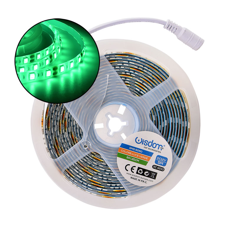 Rivitalizza ogni ambiente con l'eleganza e la vivacità della nostra striscia LED 12V, che offre un'illuminazione di colore verde brillante e intensa. Questa striscia LED da 5 metri è dotata di 60 LED per metro, garantendo un flusso luminoso di 3600 lumen, ideale per creare un'atmosfera energica e rilassante in qualsiasi spazio. La striscia è progettata per essere incredibilmente flessibile e facilmente adattabile a diverse esigenze di design. La sua forma sottile e la possibilità di tagliarla secondo la lunghezza desiderata la rendono perfetta per una vasta gamma di applicazioni, dall'illuminazione sotto gli armadietti della cucina, all'accentuazione di scale e corridoi, fino alla creazione di ambienti unici in bar, ristoranti o spazi commerciali. Il CRI superiore a 80 assicura che i colori siano resi fedelmente, migliorando l'esperienza visiva e contribuendo all'atmosfera generale del tuo spazio. Inoltre, la classe energetica A+ della striscia LED 12V garantisce un'illuminazione efficiente e sostenibile, contribuendo a ridurre i costi energetici e l'impatto ambientale. La striscia LED è progettata con LED SMD 5050, noti per la loro affidabilità e lunga durata, garantendo che la tua illuminazione resti vivace e senza problemi per anni. La tensione di alimentazione di 12V AC e la frequenza di 50/60 Hz rendono questa striscia LED sicura e versatile per diversi usi, sia in ambienti interni che esterni. Grazie all'angolo di illuminazione di 120°, questa striscia LED offre una distribuzione della luce omogenea e ampia, eliminando punti scuri e garantendo una copertura luminosa completa. La funzionalità tagliabile aggiunge ulteriore versatilità, permettendoti di adattare la lunghezza della striscia alle tue specifiche esigenze di design. La dimmerabilità ti consente di personalizzare l'intensità luminosa secondo le tue preferenze, creando l'atmosfera perfetta per ogni occasione. Che tu stia cercando un'illuminazione delicata per un ambiente rilassante o una luce vivace per energizzare uno spazio, la nostra striscia LED 12V ti offre la flessibilità necessaria. La striscia è facilmente collegabile, permettendoti di estendere la tua soluzione di illuminazione senza problemi. Realizzata in materiali di alta qualità come il silicone, garantisce durata e resistenza. Il grado di protezione IP 65 assicura che la striscia sia resistente all'acqua e alla polvere, rendendola ideale per applicazioni sia interne che esterne. Con tutti questi attributi, la nostra striscia LED 12V è la scelta perfetta per chi cerca una soluzione di illuminazione che combina stile, efficienza e versatilità. Sia che tu voglia rinnovare il tuo spazio domestico, aggiungere un tocco di colore in un ambiente commerciale, o creare un'atmosfera unica in eventi speciali, questa striscia LED è la soluzione ideale. L'installazione è semplice e intuitiva, non richiedendo particolari competenze tecniche. Tuttavia, è importante notare che l'alimentatore non è incluso, permettendoti di scegliere la soluzione di alimentazione più adatta alle tue esigenze specifiche. In sintesi, la nostra striscia LED 12V verde non è solo un accessorio di illuminazione, ma un vero e proprio elemento di design che può trasformare qualsiasi spazio. Con la sua luminosità intensa, colore vibrante, flessibilità e efficienza energetica, questa striscia LED rappresenta la scelta ideale per chi cerca una soluzione di illuminazione che sia allo stesso tempo funzionale ed esteticamente piacevole. Acquistala oggi per portare energia e stile nel tuo ambiente