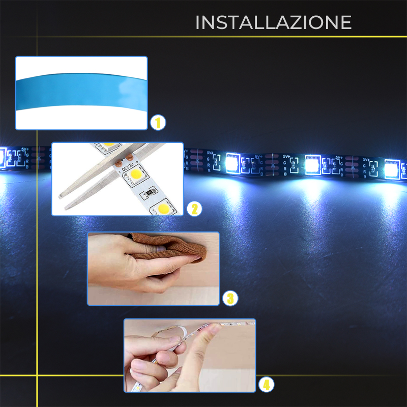 La nostra Striscia LED da 3 metri per retroilluminazione TV è il complemento ideale per trasformare la tua esperienza di visione in qualcosa di unico e coinvolgente. Progettata con tecnologia all'avanguardia SMD 5050, questa striscia LED offre una luce di alta qualità, con colori RGBW che creano un'atmosfera perfetta per ogni tipo di intrattenimento televisivo. Il prodotto, lungo 3 metri e con una larghezza di soli 8 mm, è facilmente personalizzabile e tagliabile per adattarsi a qualsiasi dimensione di schermo TV. La facilità di installazione è un punto di forza: la connessione USB consente un collegamento rapido e semplice, rendendola accessibile a tutti. La funzionalità dimmerabile, controllabile tramite un pratico telecomando incluso nella confezione, permette di regolare l'intensità della luce secondo le tue preferenze, garantendo così un comfort visivo ottimale. Questo aspetto è fondamentale per proteggere i tuoi occhi durante lunghe sessioni di visione, riducendo l'affaticamento e migliorando l'esperienza complessiva. La striscia LED è inoltre caratterizzata da un angolo di illuminazione di 120°, che assicura una diffusione uniforme della luce, arricchendo l'ambiente circostante con un'illuminazione morbida e senza riflessi fastidiosi. Questo rende la nostra striscia LED ideale non solo per l'intrattenimento, ma anche come elemento decorativo per creare l'atmosfera giusta in qualsiasi stanza. Dal punto di vista della sostenibilità, la striscia LED si posiziona in una classe energetica A+, assicurando un consumo energetico ridotto e una lunga durata. Questo non solo contribuisce a un impatto ambientale minore, ma garantisce anche un risparmio economico nel lungo termine. La qualità dei materiali è un altro punto di forza del nostro prodotto. Realizzata in silicone resistente, la striscia LED è progettata per durare nel tempo, mantenendo un aspetto elegante e professionale. Il grado di protezione IP20 la rende adatta all'uso interno, proteggendola da polvere e piccoli corpi estranei. In conclusione, la nostra Striscia LED da 3 metri per retroilluminazione TV è una scelta eccellente per chi cerca un'illuminazione di qualità, funzionale e stilisticamente versatile. Che tu stia guardando un film, una serie TV o giocando a un videogioco, la nostra striscia LED migliorerà significativamente la tua esperienza di visione, rendendola più immersiva, confortevole e piacevole