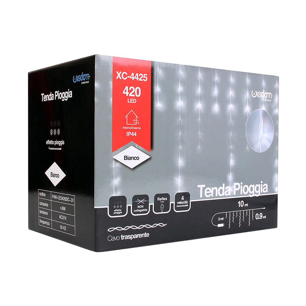 La nostra tenda LED effetto pioggia luce bianca è un prodotto unico nel suo genere, ideale per chi cerca un'illuminazione esterna sia funzionale che esteticamente gradevole. Con una lunghezza totale di 10 metri e un cavo trasparente che ne esalta l'eleganza, questa tenda LED è perfetta per creare atmosfere incantevoli in giardini, terrazze, balconi, o per eventi all'aperto. La tenda è dotata di 420 LED di tipo Reflex F5, noti per la loro luminosità e durata. Ogni LED è distanziato di 7,5 cm, garantendo una distribuzione uniforme della luce. La particolarità di questo prodotto è l'effetto pioggia, che con 3 velocità memorizzabili, permette di creare scenari luminosi dinamici e affascinanti. L'effetto pioggia non è solo un dettaglio estetico, ma contribuisce a creare un ambiente accogliente e suggestivo. L'alimentazione a bassa tensione di 31V assicura un utilizzo sicuro e economico. La tenda può essere alimentata con una tensione di 220-240V AC e una frequenza di 50/60 Hz, rendendola versatile e adatta a diversi contesti di utilizzo. Inoltre, il cavo di alimentazione lungo 3 metri offre una grande flessibilità nell'installazione. La struttura della tenda è progettata per un uso esterno, grazie al grado di protezione IP44 che la rende resistente a spruzzi d'acqua e agenti atmosferici. I materiali utilizzati, gomma e rame, sono scelti per garantire durabilità e resistenza nel tempo. La tenda è disponibile in diverse altezze (30, 60, 90 cm) per adattarsi a qualsiasi esigenza di spazio e design. Questo prodotto non è solo una soluzione di illuminazione, ma un vero e proprio elemento decorativo che può trasformare qualsiasi spazio. Che sia per un matrimonio, una festa in giardino, o semplicemente per aggiungere un tocco di magia al tuo spazio esterno, la nostra tenda LED effetto pioggia è la scelta ideale. Il design semplice ma raffinato, con il cavo trasparente che si fonde armoniosamente con l'ambiente circostante, rende questa tenda LED adatta a tutti gli stili, dal classico al moderno. La facilità di installazione e la possibilità di memorizzare le impostazioni di velocità dell'effetto pioggia, permettono di personalizzare l'illuminazione secondo le proprie preferenze. Per chi cerca una soluzione di illuminazione che unisca estetica, funzionalità e sicurezza, la nostra tenda LED effetto pioggia luce bianca è la risposta. Questo prodotto rappresenta l'equilibrio perfetto tra tecnologia e design, offrendo un'esperienza di illuminazione superiore sia in termini di performance che di stile. Concludendo, la nostra tenda LED effetto pioggia è una scelta eccellente per chi desidera valorizzare il proprio spazio esterno con un tocco di eleganza e originalità. La sua versatilità la rende adatta a una varietà di occasioni, dalla decorazione quotidiana alla creazione di ambientazioni speciali per eventi. Scopri il fascino di un'illuminazione che va oltre la semplice funzione, diventando un elemento distintivo del tuo spazio esterno