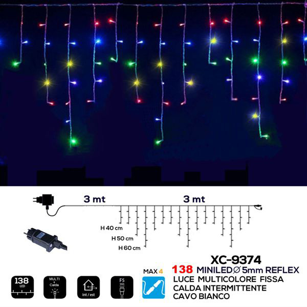 TENDA LUMINOSA 138 LED LUCE MULTICOLORE FISSA E CALDA INTERMITTENTE