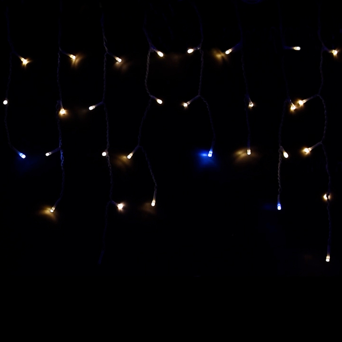 Tenda led con luce calda fissa piu' bianca intermittente cavo bianco da 1,8mm e led reflex 5mm . Alimentata a bassa tensione 31v risulta adatta ad un utilizzo in esterni. Dotata di 230 led fissi e 26 intermittenti