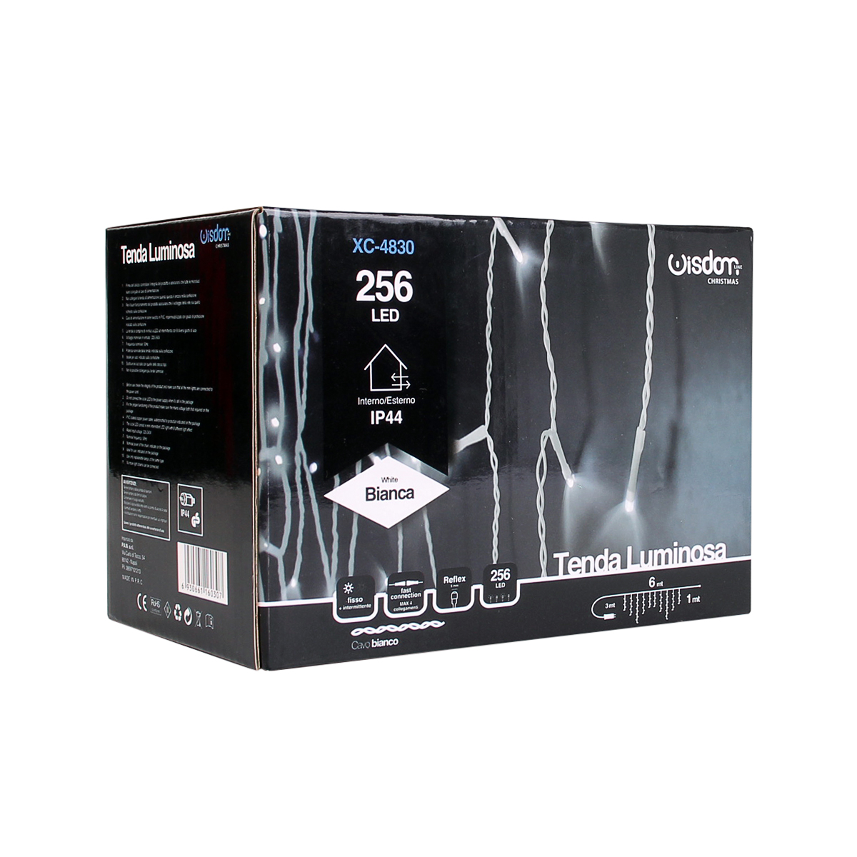 Tenda con 256 led reflex 5mm cavo bianco e luce bianca fissa. Alimentata a bassa tensione 31v è collegabile fino ad un max di 3pz ed è adatta ad un utilizzo sia in ambienti interni che esterni