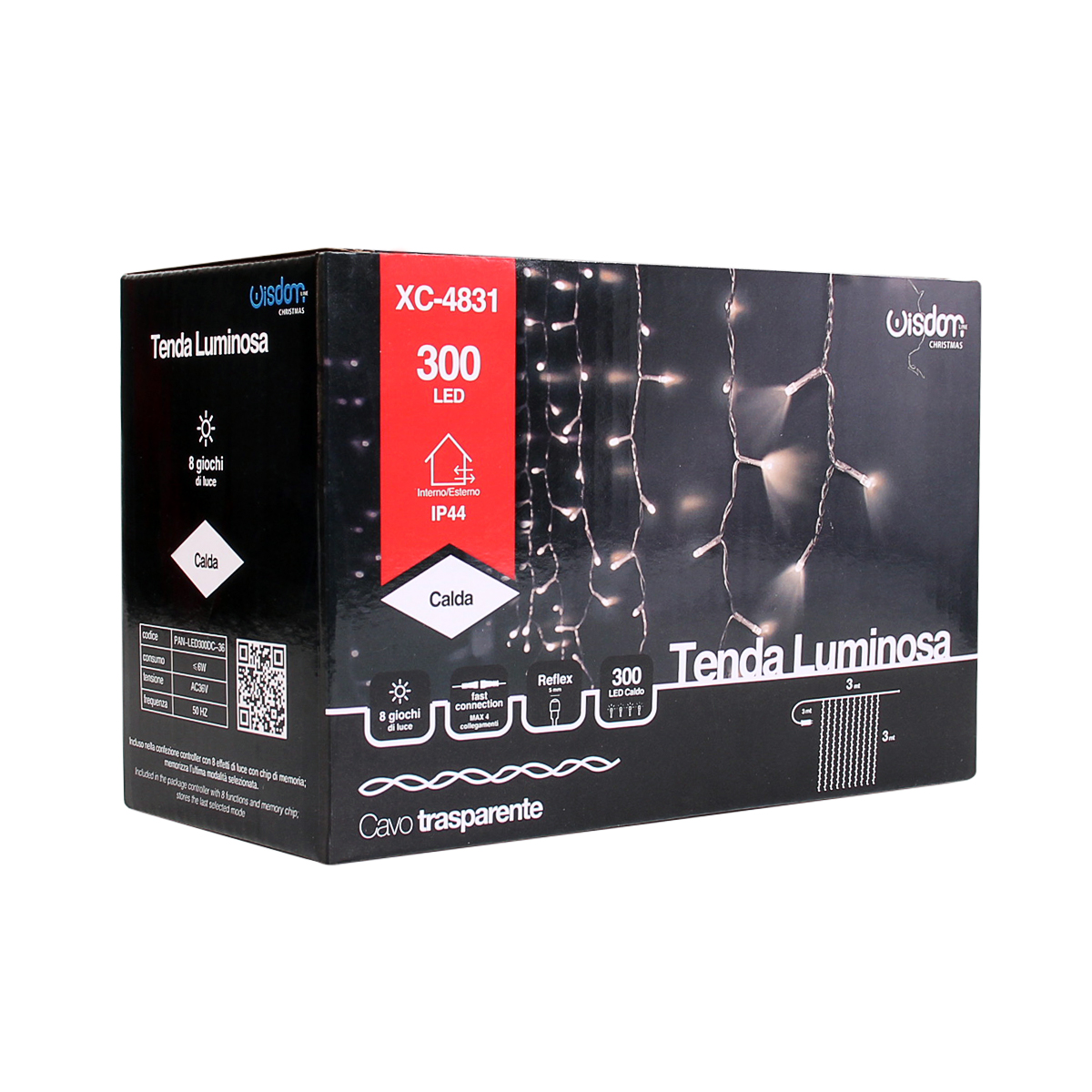 Tenda 300 micro led 8 giochi di luce Calda 3Mx3M cavo trasparente con entrata in corrente diretta 220v