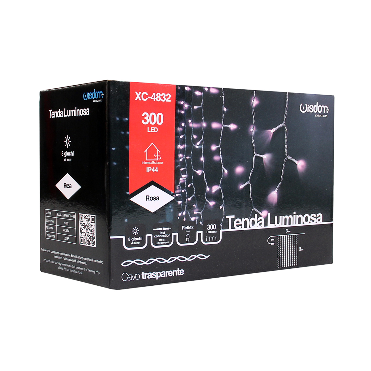 Tenda 300 micro led 8 giochi di luce Rosa 3Mx3M cavo trasparente con entrata in corrente diretta 220v