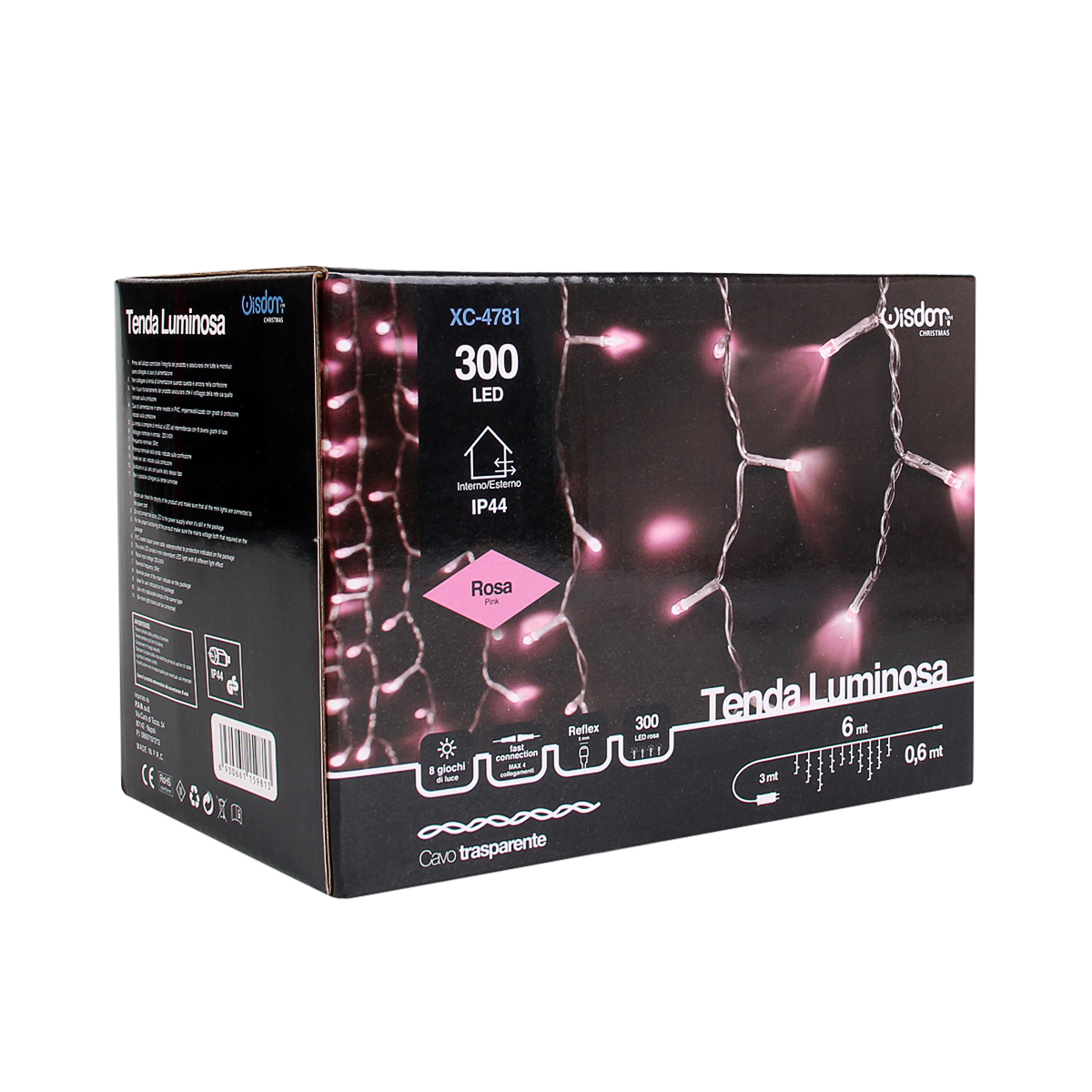 Tenda Luminosa 300 LED 31v 8 Giochi di Luce Rosa 6M Cavo Trasparente