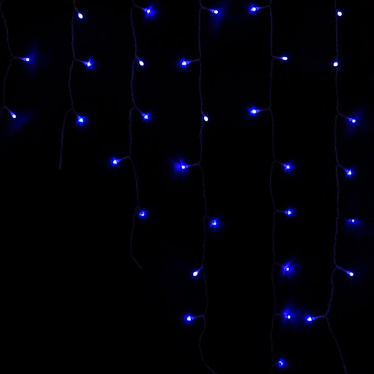 Tenda con 380 e luce blu fissa piu' bianca intermittente cavo bianco e led reflex. Alimentata a bassa tensione 31v risulta adatta ad un utilizzo in esterni