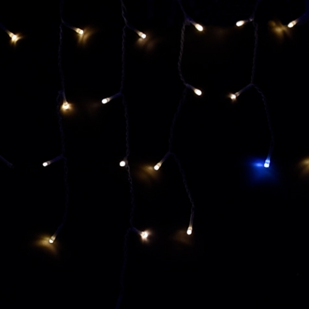 Tenda con 380 e luce calda fissa piu' bianca intermittente cavo bianco. Alimentata a bassa tensione 31v risulta adatta ad un utilizzo in esterni