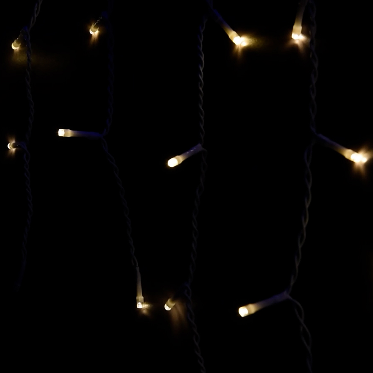 Tenda con 380 e luce calda fissa piu' bianca intermittente cavo bianco. Alimentata a bassa tensione 31v risulta adatta ad un utilizzo in esterni