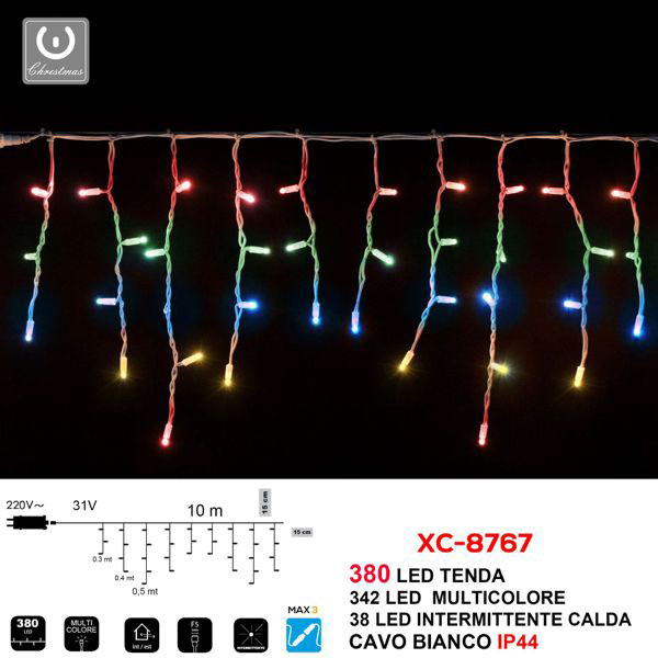 TENDA LUMINOSA 380 LED LUCE MULTICOLOLRE FISSA E CALDA INTERMITTENTE