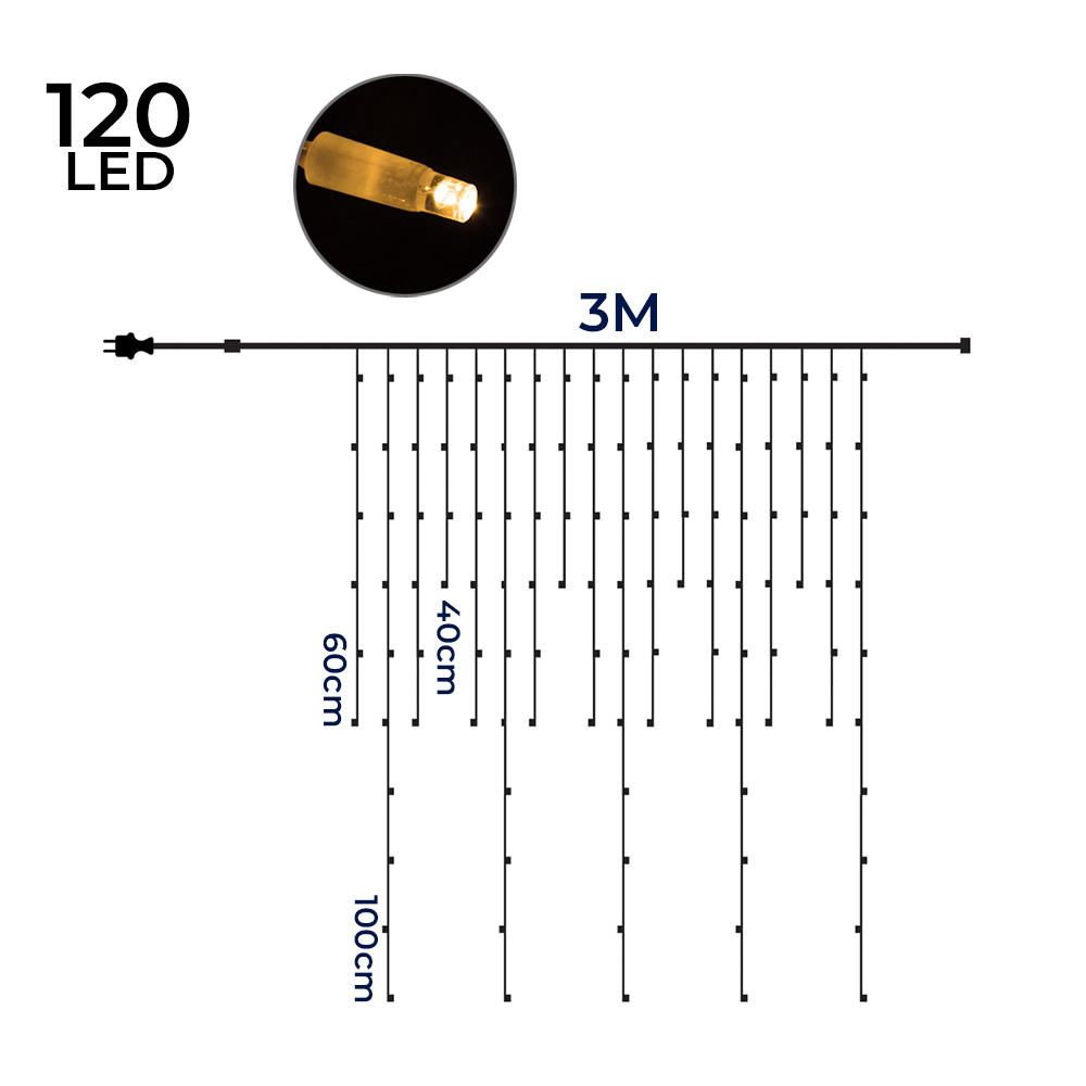 La nostra tenda luminosa LED rappresenta una soluzione all'avanguardia per chi desidera arricchire gli spazi esterni con un'illuminazione che sia al tempo stesso funzionale e di grande impatto visivo. Questo prodotto unisce stile, tecnologia e versatilità, offrendo una luce gialla calda capace di creare un'atmosfera accogliente e festiva in giardini, balconi, terrazzi o durante eventi all'aperto. La tenda è composta da 120 luci LED di colore giallo, disposte lungo cavi pendenti di diverse lunghezze (40, 60 e 100 centimetri), garantendo così una distribuzione della luce omogenea e spettacolare su un'area di 3 metri. Realizzata con filo di rame placcato in argento e rivestita in PVC, questa tenda luminosa non solo assicura una grande durabilità e resistenza agli agenti atmosferici, ma è anche conforme al grado di protezione IP44, il che la rende particolarmente adatta all'uso esterno. Il design dei cavi, di colore bianco, è pensato per integrarsi perfettamente con l'ambiente circostante, mantenendo un'estetica elegante e minimale che non passa inosservata. Grazie alla tecnologia LED Reflex F8, la nostra tenda luminosa garantisce un'illuminazione di qualità superiore, con un consumo energetico ridotto. Questo significa poter godere di lunghe serate all'aperto illuminati da una luce calda e accogliente, senza preoccuparsi dell'impatto sulla bolletta elettrica. La modalità di illuminazione può essere impostata su fissa o intermittente, permettendo di variare l'effetto luminoso in base all'occasione o all'atmosfera desiderata. L'installazione è semplice e immediata, grazie all'attacco Spina Schuko e al cavo di alimentazione di 1,5 metri. Inoltre, è possibile collegare fino a 10 unità insieme, consentendo di coprire anche aree estese senza la necessità di ulteriori prese elettriche. Questa caratteristica rende la nostra tenda luminosa LED estremamente versatile e adatta a svariate applicazioni, dalla decorazione domestica alle grandi celebrazioni all'aperto. La distanza tra i LED di 10 cm è studiata per offrire una distribuzione della luce equilibrata, creando effetti visivi mozzafiato che valorizzano ogni spazio. Che si tratti di una serata relax nel proprio giardino, di una festa tra amici o di un evento speciale, questa tenda luminosa LED è in grado di trasformare qualsiasi ambiente esterno in un luogo magico e invitante. Il nostro impegno nella ricerca di soluzioni illuminotecniche avanzate ci ha permesso di sviluppare un prodotto che combina efficacemente efficienza energetica, resistenza e bellezza estetica. Con la nostra tenda luminosa LED per esterni, offriamo non solo un oggetto di design, ma una vera e propria esperienza illuminotecnica che arricchisce le serate all'aperto, creando ambienti unici e memorabili. In conclusione, la nostra tenda luminosa LED rappresenta la scelta ideale per chi cerca una soluzione illuminotecnica di alto livello, capace di unire funzionalità e stile. Grazie alla sua versatilità, qualità dei materiali e facilità di installazione, è perfetta per illuminare e decorare qualsiasi spazio esterno, rendendolo accogliente e suggestivo. Illumina le tue serate all'aperto con un tocco di magia e raffinatezza, scegliendo la nostra soluzione di illuminazione di prima classe