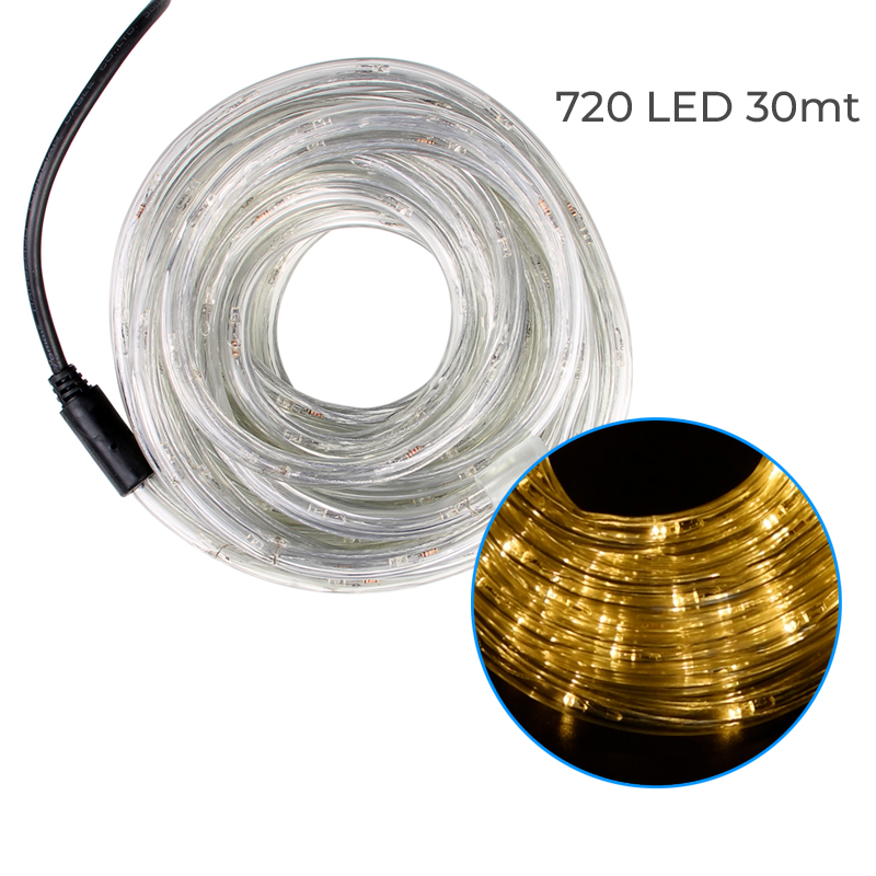 TUBO 720 LED FLESSIBILE ILLUMINAZIONE CALDA E ACCOGLIENTE 30 METRI 8 EFFETTI DI LUCE IP44 PERFETTO PER EVENTI E DECORAZIONI