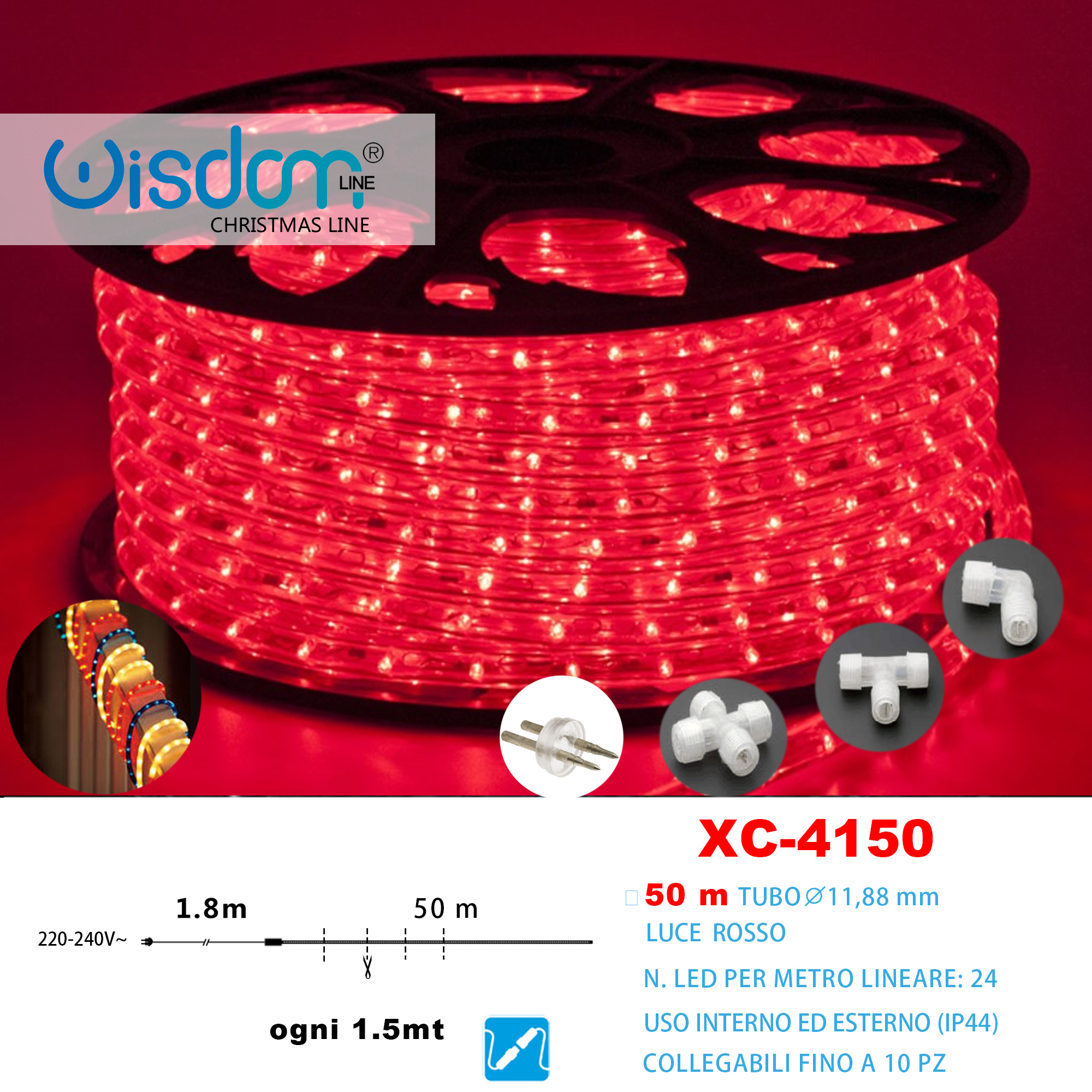 Tubo luminoso led 50mt tagliabile 24ledxmt con cavo in gomma 11.88mm luce rossa