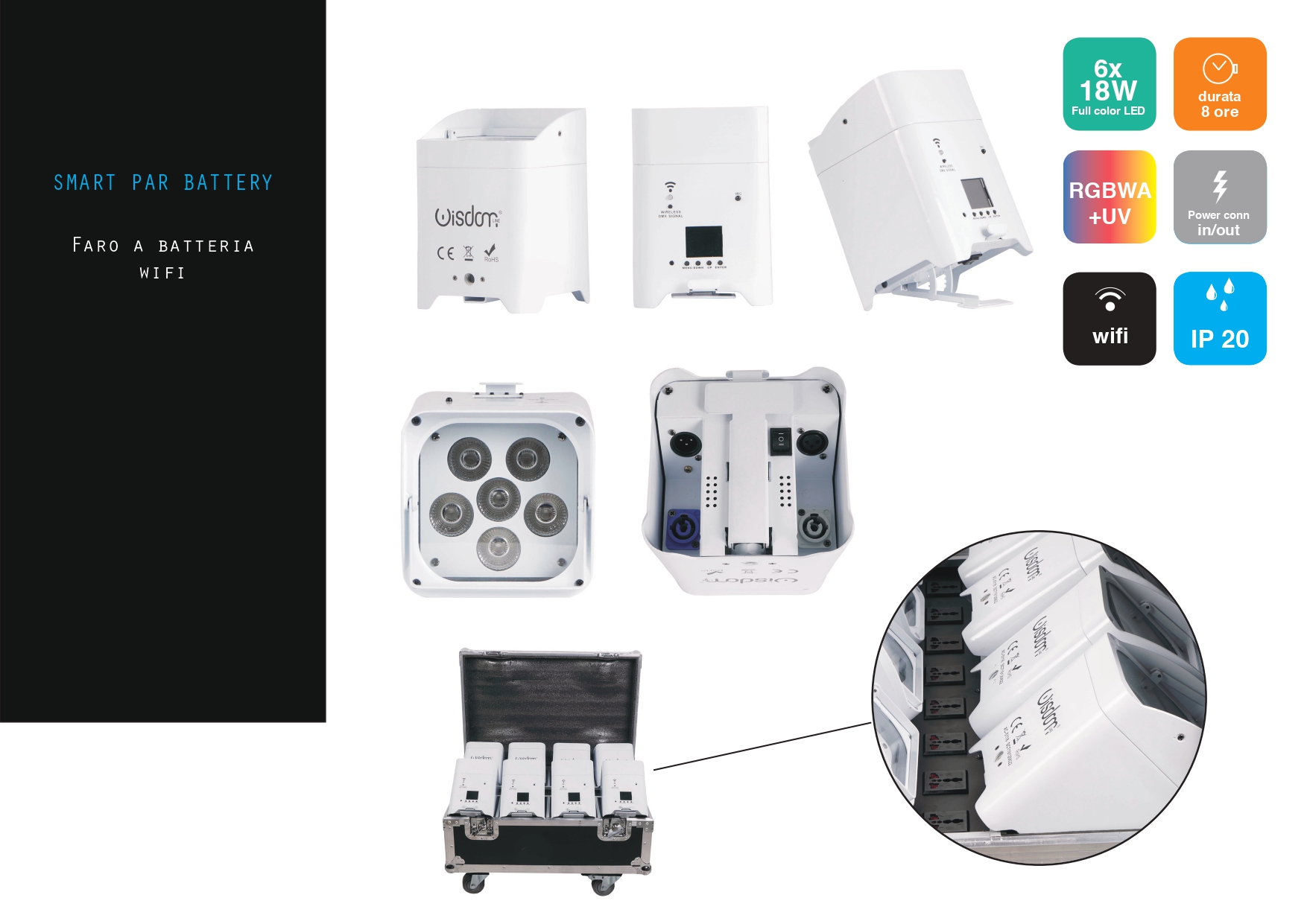 Il par led battery wifi Wisdom 6x18w  è un proiettore portatile a batteria ad altissime prestazioni tecnologiche